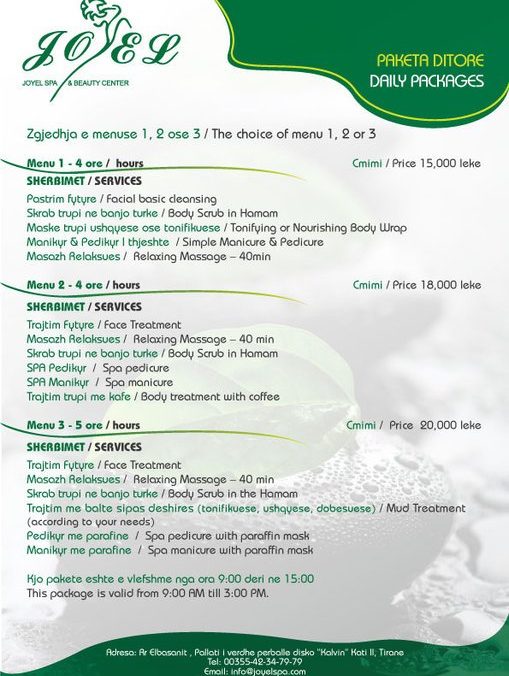 You can choose between the daily packages that we provide, according to the different services that you want . Packages are a suitable combination between: body treatments, relaxing massages, cosmetic services, are also included body skrab services at turkish bath according to your choice .